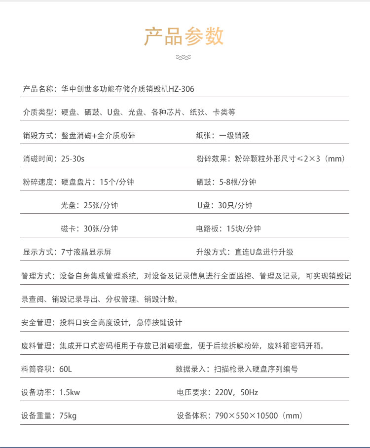 中大型多功能存储介质销毁机 HZ-306